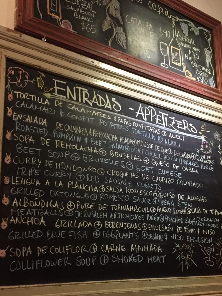 Nous décidons de pousser la porte de ce petit restaurant de Palermo sur les conseils de Yannick, sans savoir exactement de quoi il en retourne. Bien nous en pris. Las Pizarras, c’est de la pure bistronomie Argentine, avec un patron/chef (qui passe tout le service en salle) très sympathique qui nous donna même un bon tuyau sur Cafayate (à suivre).