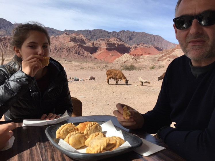 After having breakfast, we started our four houre drive to Cafayate. The drive was breathtaking. We saw the canyons and the mountains from an interesting perspective. The colors where incredible with the red, green, blue, yellow and many others. For at one point we stopped to admire the view and my dad starting to drive off without me whilst the car door was open. At first I thought it was a joke but then I realized that he didn’t know I was still out. Eventually he stopped but the whole thing was quite funny. We stopped at the anfiteatro which is a type of opening in the red rock.