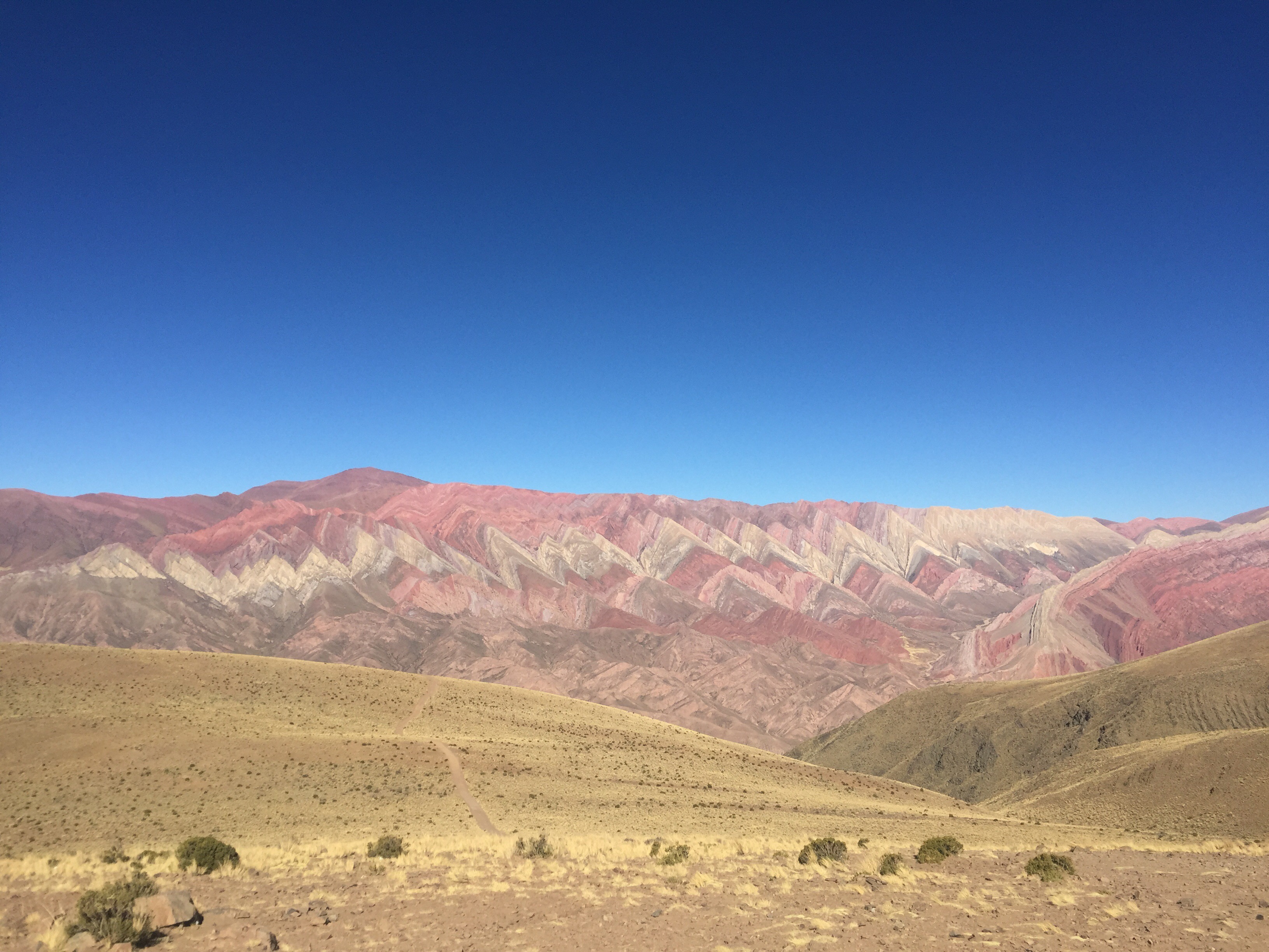 D’abord j’ai pu me reveiller tard… YES! Puis un bon début à ma belle journée… Un gâteau d’anniversaire pour le petit déjeuner! 😍🎂 Quelle merveille. Nous avons fait une grande marche au dessus de Tilcara qui était très très long et haut mais bon, très jolie donc elle valait le coup🏜 puis nous sommes finalement allés à la montagne des 14 couleurs, la route depuis Humahuaca était en fait une piste et a pris 1h pour faire 25km… une route très rocheuse alors on sautait beaucoup mais bon c’était drole! La montagne était juste splendide. C’était une expérience unique.