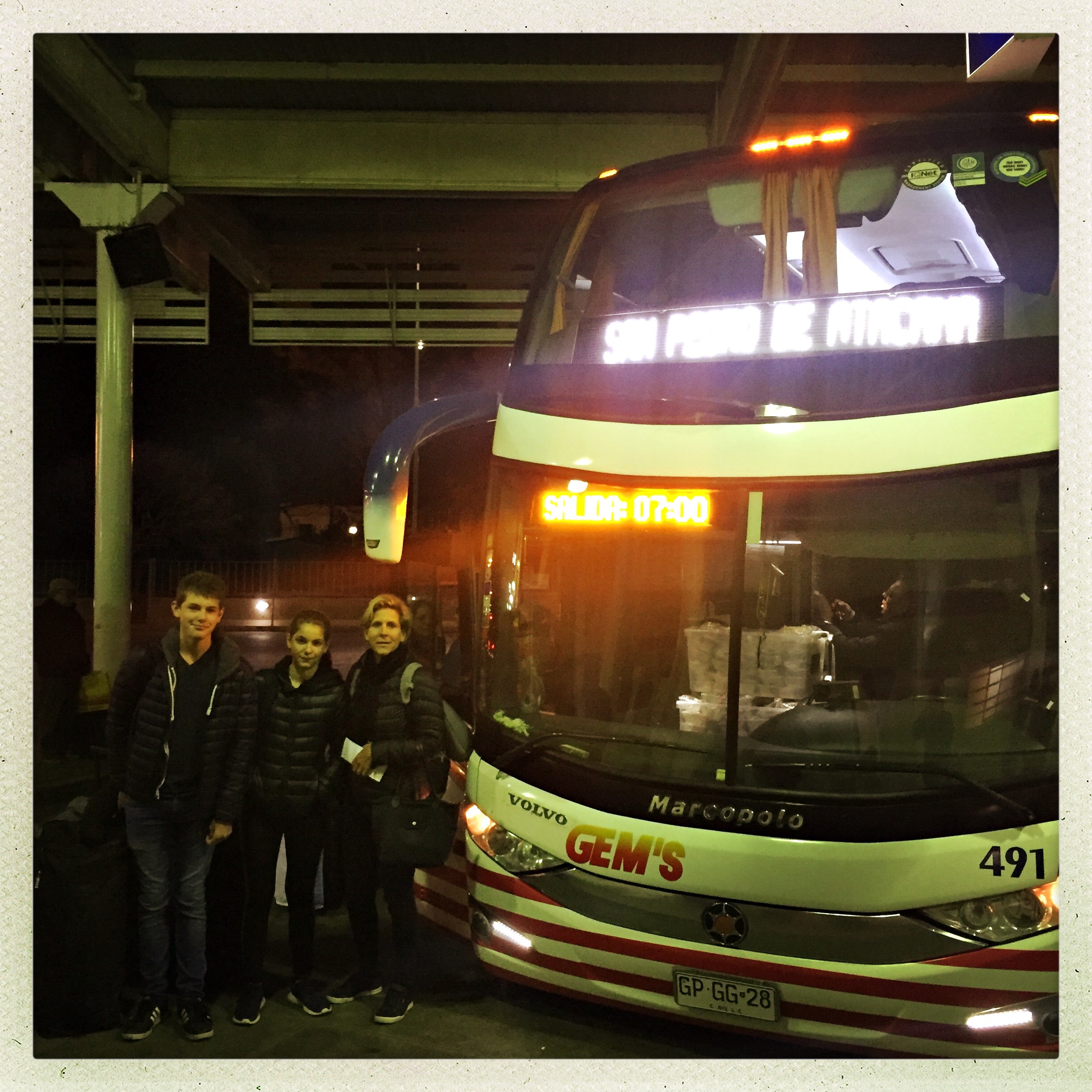 I woke up in the middle of the night (just hours before the alarm was to ring) with a terrible stomach ache. Food poisoning? Stomach bug? Just what you want before a 12 hour bus ride! So needless to say that the trip from Salta, Argentina to San Pedro de Atacama, Chile was a tough one for me. Especially when I noticed the sign inside the bus toilet « …solamente por urinar. » Hmmmm. Not quite what I went in there for. Anyway, and on the bright side, we were on a « semi-cama » bus with seriously reclining seats so, very comfortable; the scenery was absolutely amazing; the kids did not get sick from the winding Andes roads and the trip was actually 10 hours and not 12! So all in all, it was fine. Though clearly tiring because when we got to our hotel in the late afternoon, we all basically just crashed and caught up on sleep until the next morning!