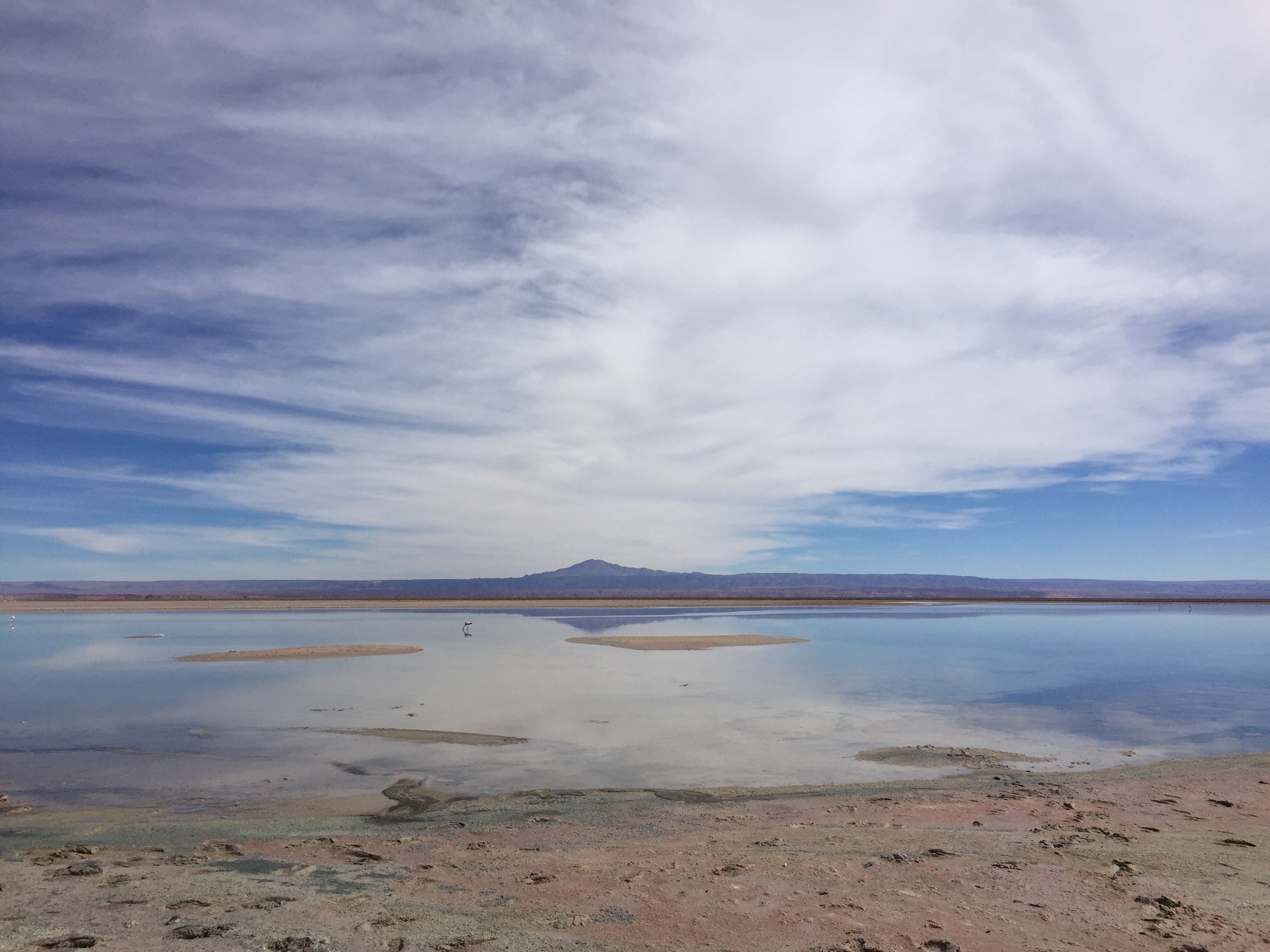 The colors were incredible and the volcanic mountains reflected in a lake where flamingos grazed (if that is indeed the term for how flamingos eat) and salt glistened all around.