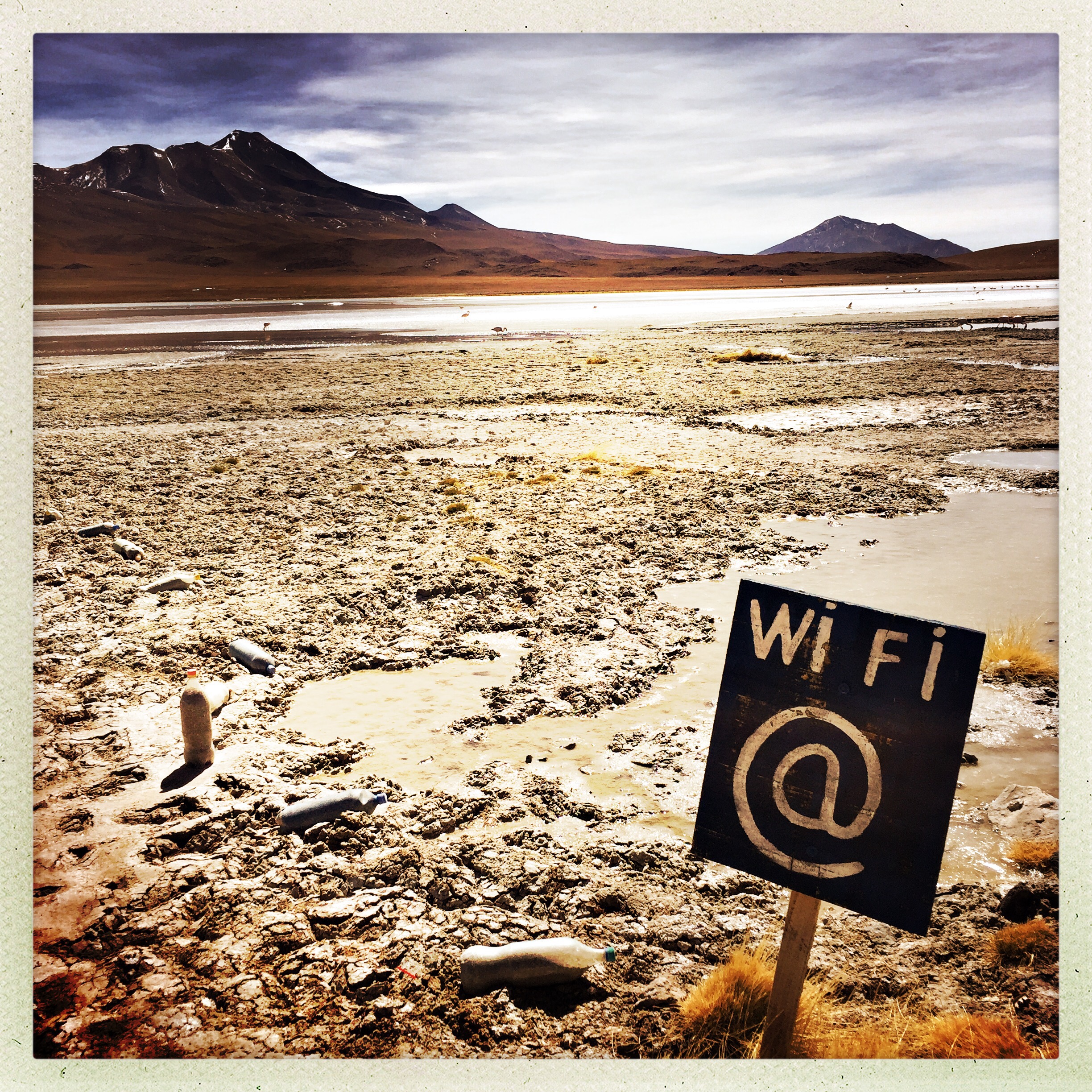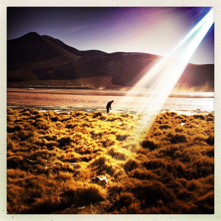 Départ à 8:30 pour une deuxième journée de pistes à travers l’altiplano bolivien. Quelques ´lagunas’ habitées de flamands roses James (seule des 3 espèces qui tient le choc ici l’hiver), des formations Rocheuses champignonesques (serais-je toujours sous l’effet hallucinogène de la coca?), nous terminons notre journée à l’hôtel de sel, au bord du salar. Comme son nom l’indique tout est fait d’iode, y compris le sol recouvert de poudre fine… C’est assez original et le blanc a le mérite de défier les modes. Nous nous couchons pas trop tard car demain lever à 5 heures. Nous dormons très bien cette fois (le sel ça conserve la viande).