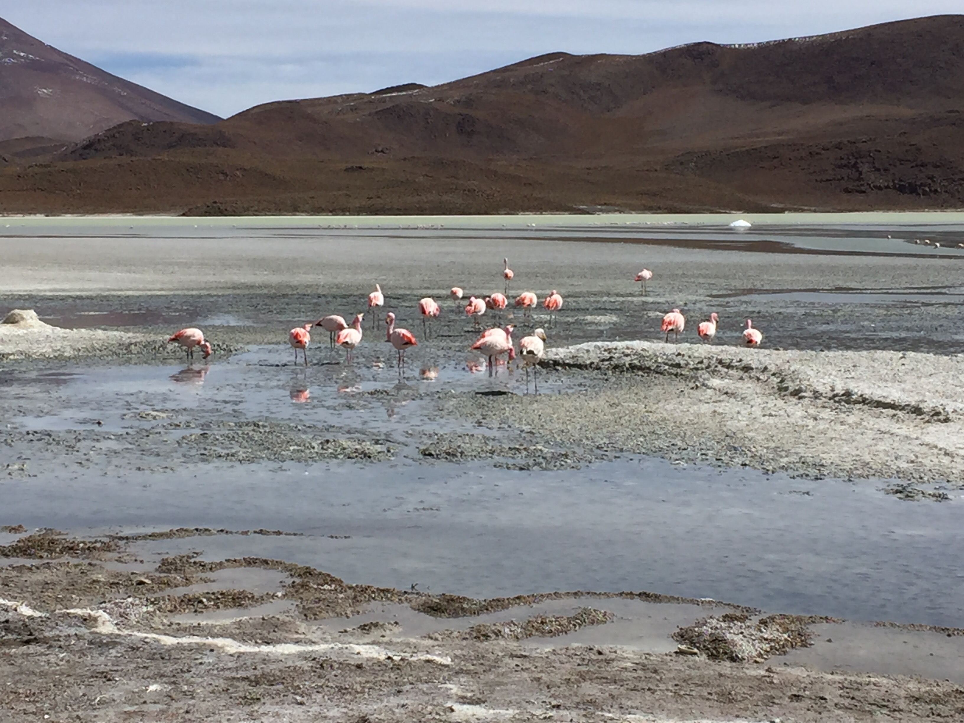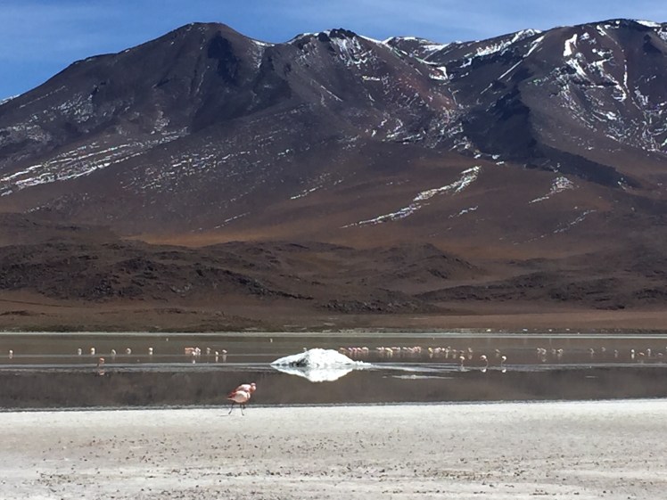 As we drove towards Uyuni, today we visited several beautiful lakes, all differently colored from the diverse minerals and with James flamingos, the only one of the three indigenous species that does not migrate in the winter.