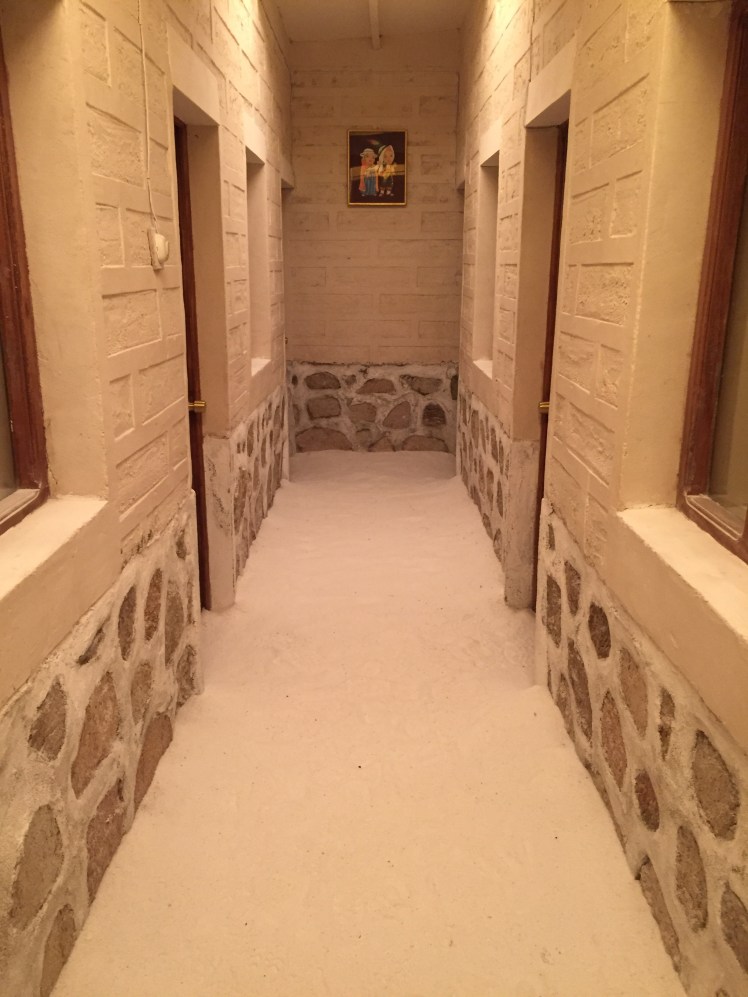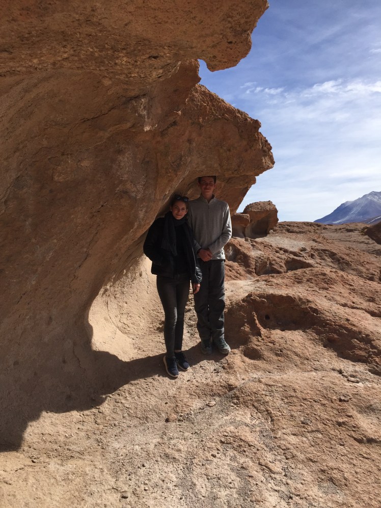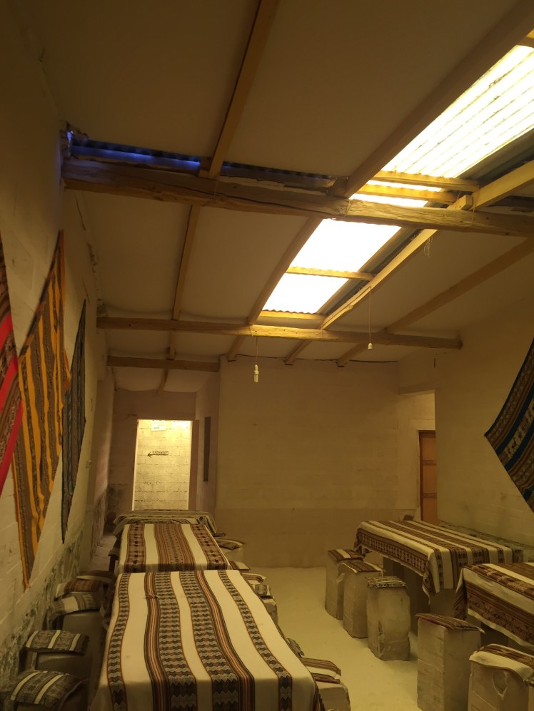 We then visited cool rock formations in Chiguana before arriving at our accomodation for the night, the Salt Hotel. You got it, the entire hotel (walls, tables, stools, beds, floors) was made out of salt! Unique to say the least.