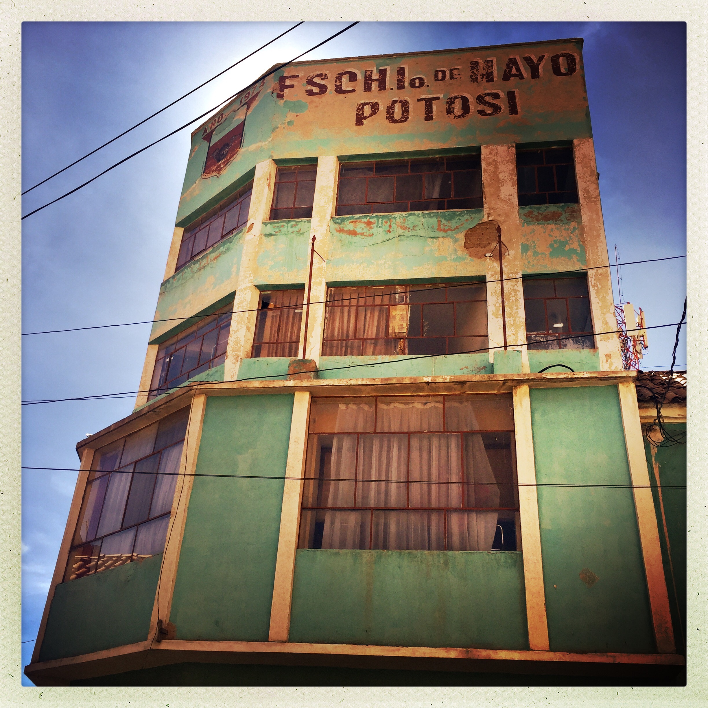 Nous reprenons la route ce matin, destination Sky hacienda hôtel, à 25 km de Sucre. Nous voulions prendre un collectivo (bus public) pour Potosi puis un taxi mais avec tous nos sacs, l’opération semble compliquée donc nous optons pour un chauffeur. C’est plus cher mais nous ne regrettons pas car Juan Carlos est un très bon guide qui nous explique pas mal de choses sur les paysages que nous traversons et le pays. Nous faisons une pause à Potosi, ville minière florissante au XVIIIe siècle, qui finança la révolution industrielle en Europe et fut à l’origine d’une grande partie du genocide americain (à ce propos, je conseille vivement la lecture du livre de Eduardo Galeano sur le sujet: les veines ouvertes de l’Amerique latine).