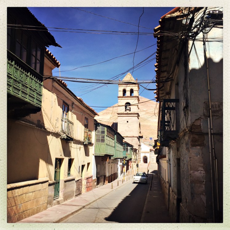After much debate about taking a Collectivo (local bus) to Potosi then trying to find a big enough taxi to take us on to our hotel outside of Sucre from there, we decided to hire a private car to take us all the way. A luxury, but well worth it because we had a great driver/guide with whom we were able to learn more about Bolivia. We stopped for lunch in Potosi, Bolivia’s once flourishing mining capital whose riches funded Europe’s industrial revolution, and then continued on to the Sky Hacienda hotel, on a dirt path 20km before Sucre, where we had planned to spend two days just relaxing.