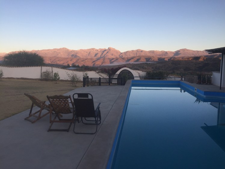 Sky Hacienda looked like a remote, but nice enough place from its website and reviews, but wow, it was so so much more. It is rare for my expextations to be surpassed (as most of you know) but this two bedroom guest house/luxury boutique hotel did just that. Conceived, built and run by an English/Canadian couple, it is beautifully designed and decorated with huge windows all around and breathtaking views of the mountains and the valley below. Because it was just the four of us, it felt as if we were guests in a spectacular home with « June » as our lovely host and, I must mention, excellent cook. Exactly half way through our trip, we were really ready for a quality home cooked meal. Delicious! Thank you June.