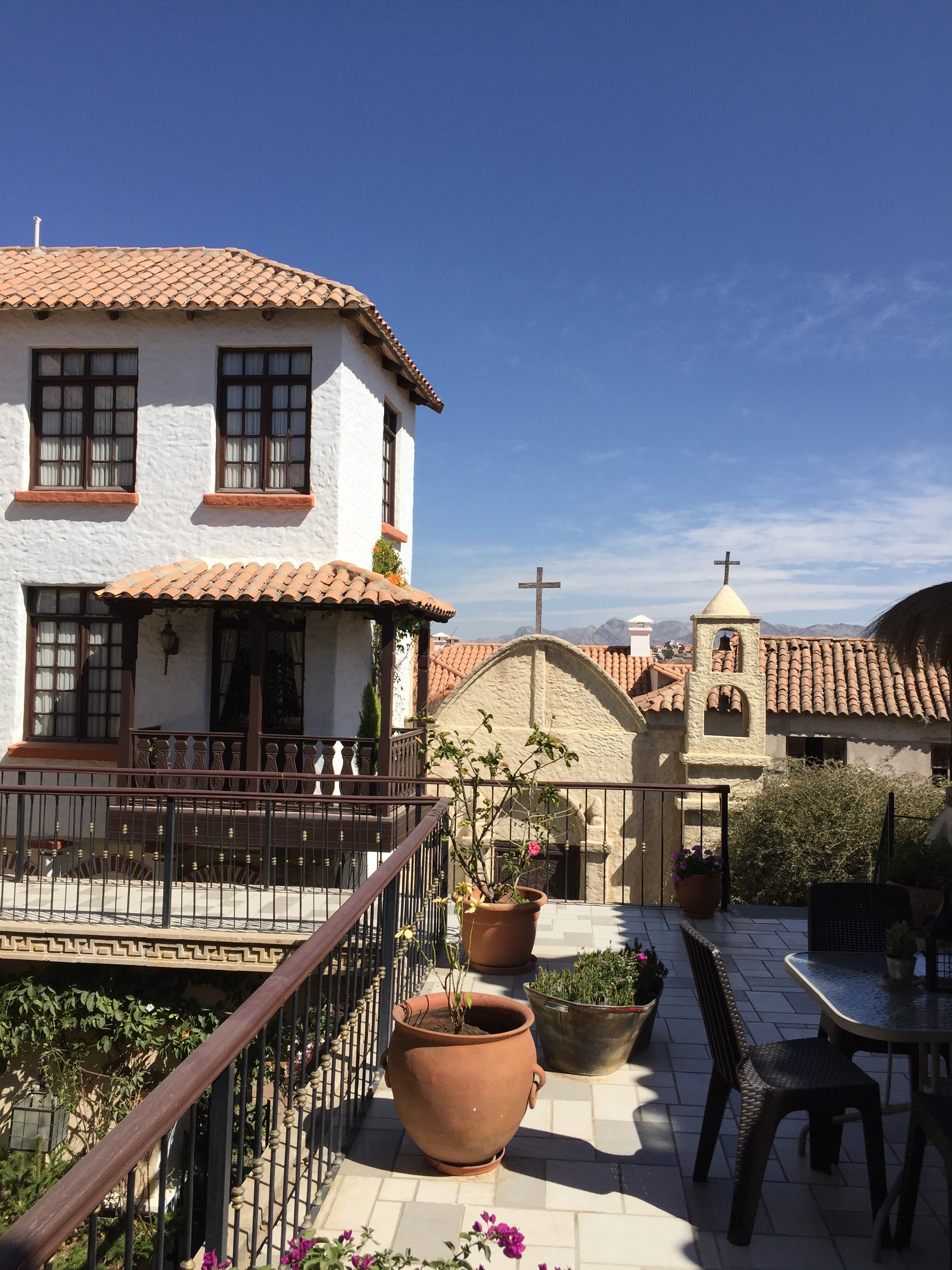 After another delicious breakfast, this time with perfect eggs, tomatoes and the blood sausage we bought in Yotala yesterday, June very kindly drove us to our next destination, the colonial city of Sucre where we checked into the beautiful and authentic Mi Pueblo Samary hotel.