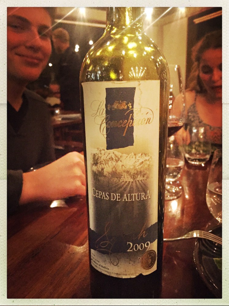 Bien sur nous avons choisi le menu à 14 plats (ici ), accompagné d’un vin bolivien très intéressant (à noter qu’on ne peut boire les vins boliviens qu’en Bolivie).