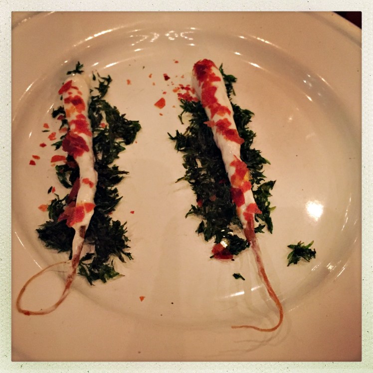 Après presque deux semaines en Bolivie, il était intéressant de retrouver des inspirations traditionnelles goûtées ailleurs mais complètement revisitées et transcendées, comme les tripes par exemple.