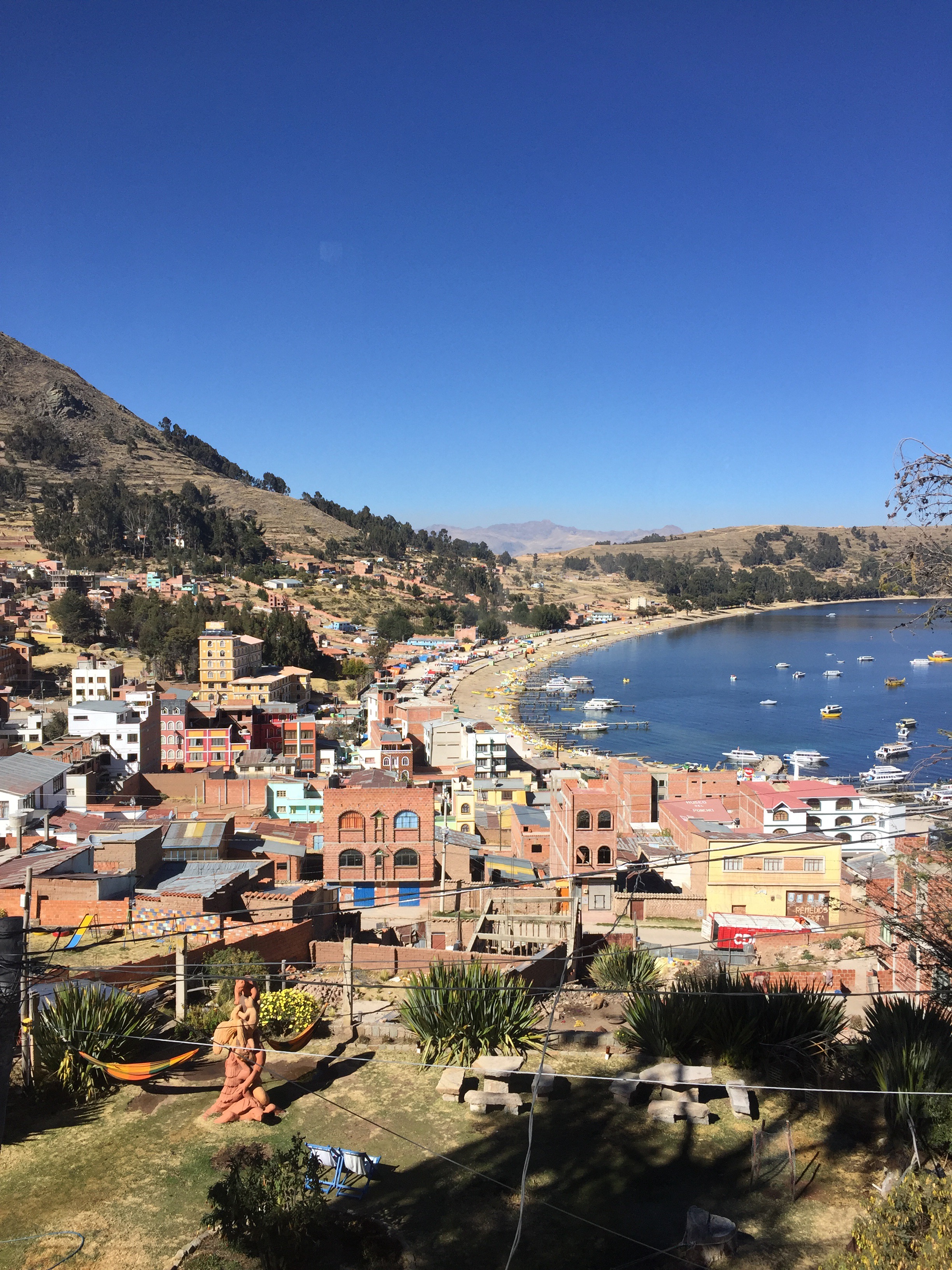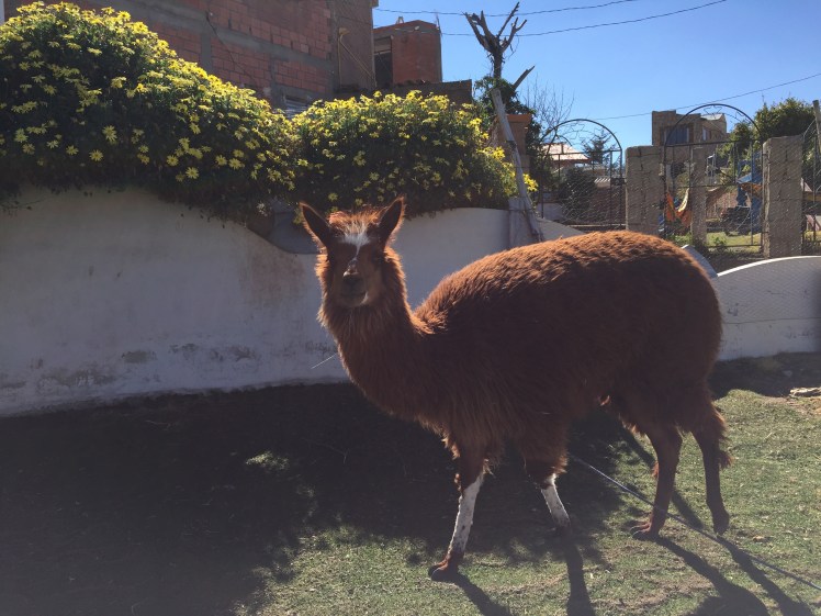 Réveil à 5:30h du matin… Partis à 6h, en route pour le Bolivia Hop bus. Nous sommes arrivés au point de rencontre mais on a dû attendre le bus pendant 1h😭 (j’aurais pu dormir plus longtemps). Le bus pour aller à Copacabana a duré à peu près 4h. C’est un petit village qui surplombe le lac Titicaca. Nous sommes montés jusqu’à notre hôtel qui était très haut surtout avec nos valises. Un peu galère mais nous sommes arrivés dans notre bel hôtel, La Cupula.. Avec une vue splendide et des alpacas dans le jardin!