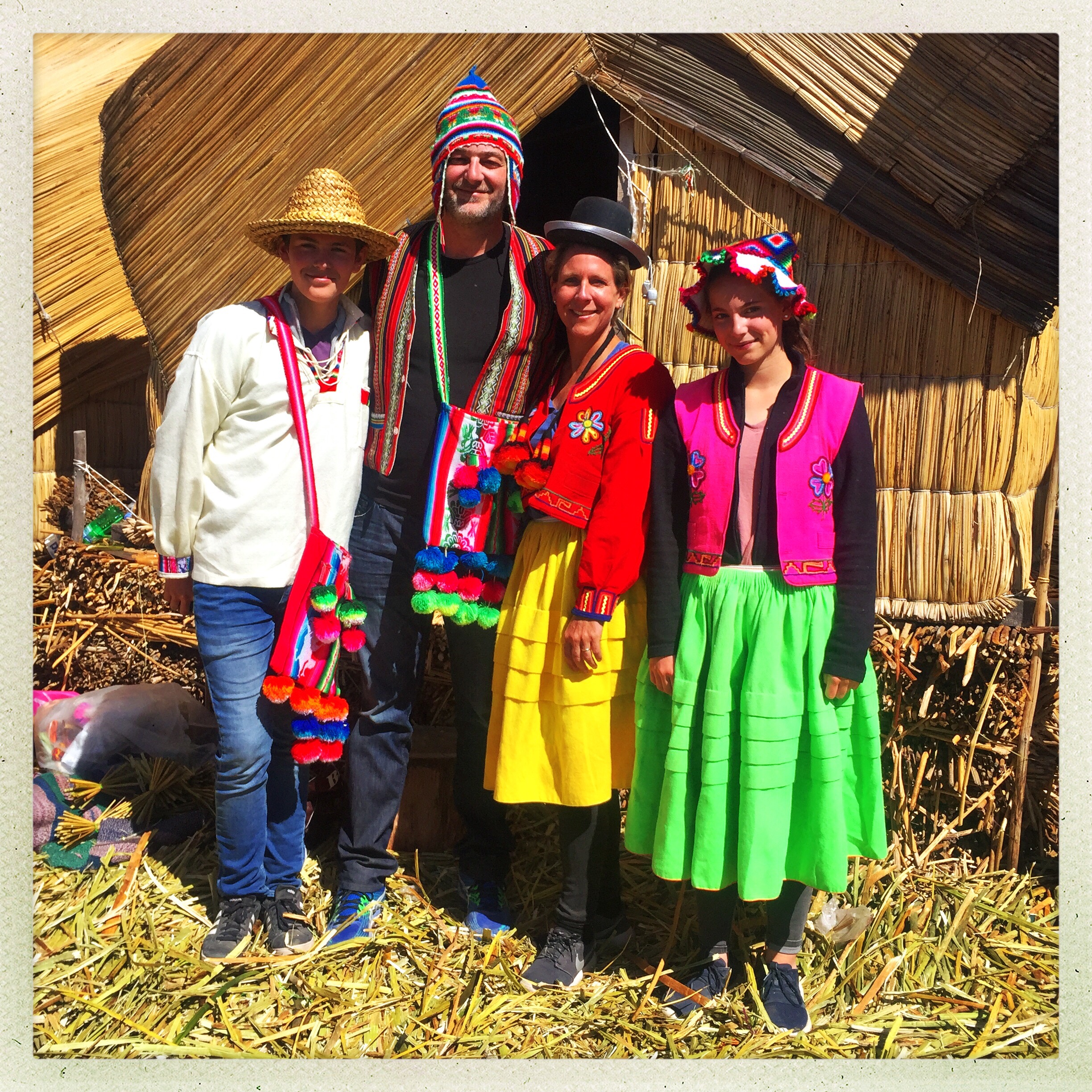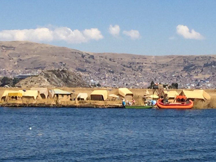 Ce matin on s’est réveillé tôt pour aller sur un tour des îles Uros et notre homestay. Nous avons pris un bateau avec un guide qui nous a tout expliqué. Quand nous sommes arrivés sur l’île les gens qui y habitaient nous ont expliqué comment ils avaient construit leurs îles flottantes qu’avec des roseaux, qui s’appellent totora, et comment ils faisaient pour vivre sur l’eau au milieu du lac Titicaca. Les gens qui habitent sur ces îles maintenant vivent que pour le tourisme donc j’ai trouvé que c’était trop touristique. Les habitants se déguisaient et nous aussi on devait s’habiller comme eux pour la photo, ils nous vendaient des choses qu’ils avaient faites.