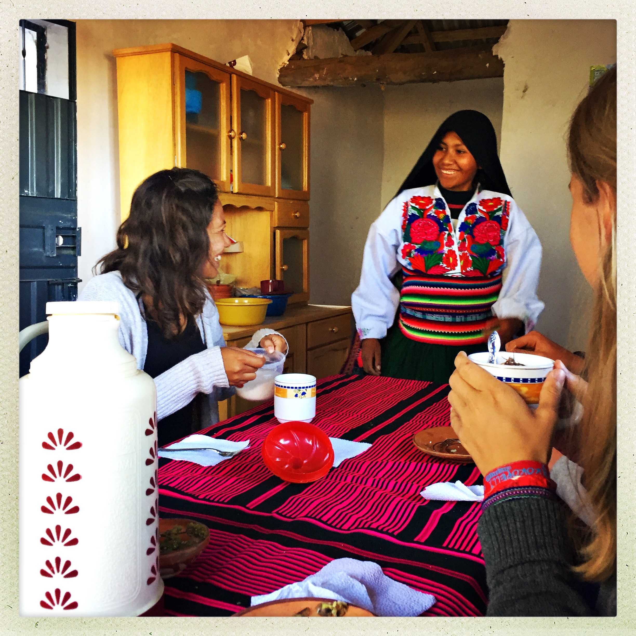 Elle ne savait pas qu’elle allait avoir des gens chez elle donc le déjeuner n’était pas prêt ni les chambres. Nous avons aidé à faire le repas en épluchant les pommes de terre! Nous n’étions pas que tous les quatre chez elle mais il y avait aussi deux autres filles. Une etait du Mexique et l’autre du Danemark. Nous avons mangé un repas typique puis on était pressé pour rejoindre notre groupe pour monter au temple « pachatata ». Comme on était en altitude c’était compliquer de respirer mais sinon le temple était magnifique. Une fois par an les habitants montent au temple pour une célébration religieuse. Nous avons vu le coucher du soleil de tout en haut.