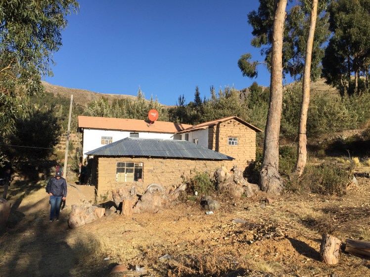 Après nous sommes remontés dans le bateau pour aller à l’île Amantani où on allait dormir chez les habitants. Le bateau était plutôt long (3h) mais j’ai pu me mettre dehors pour lire et bronzer. Quand nous sommes arrivés nous avons attendu Vilma, notre hôte. Elle était très jeune et avait 2 filles. Une de 1 an et l’autre de 3. Nous avons marché du port à sa maison.