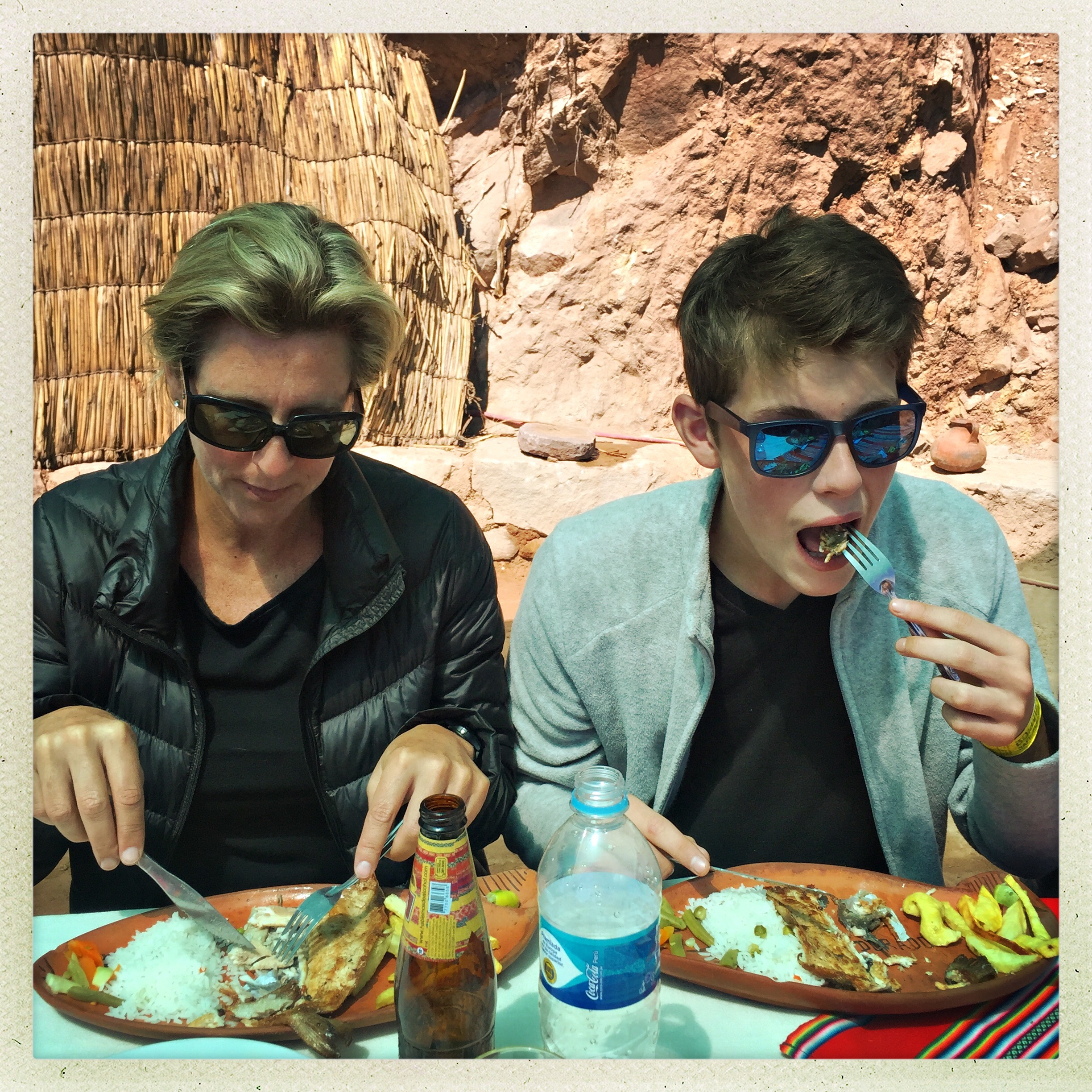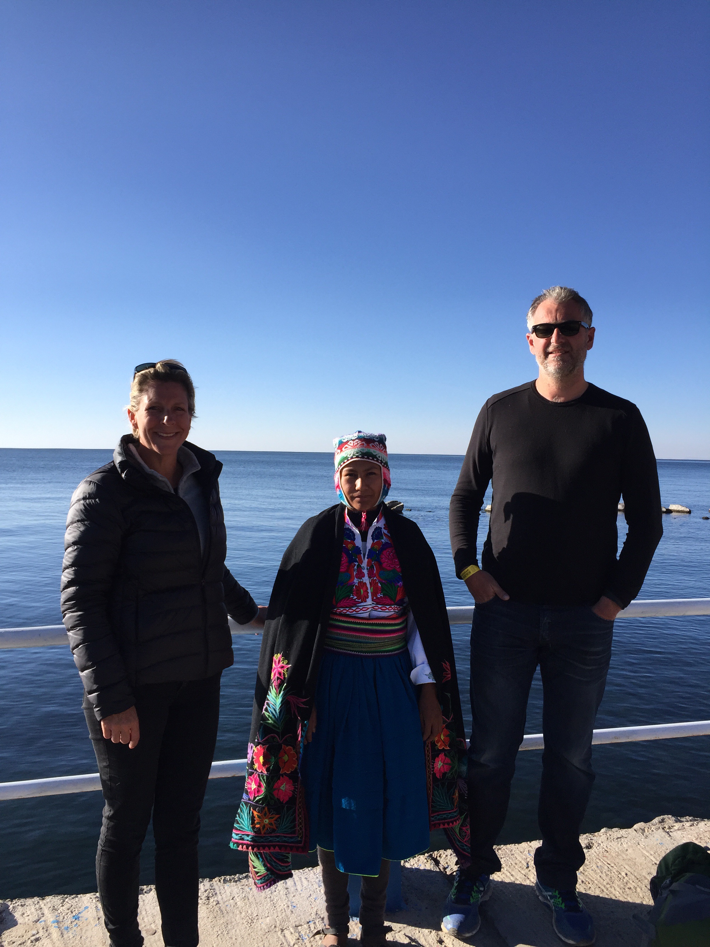 On this island, the men are notorious for their knitting prowess and the women for their weaving. After walking around the island, we had a lovely grilled trout lunch overlooking the lake with a knitting demonstration before boarding the boat for the 3-hour return to Puno.