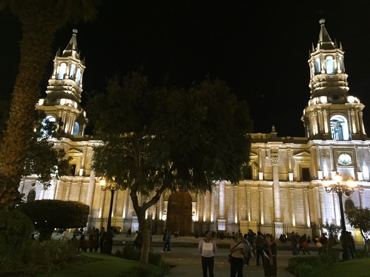 Nous arrivons à Arequipa à 5h et Péru Hop nous dépose à notre hotel (Los Tambos) qui est en mesure de nous ouvrir la porte d’une des deux chambres, ce qui nous permet de dormir un peu après cette nuit de bus agitée, avant d’explorer la ville.